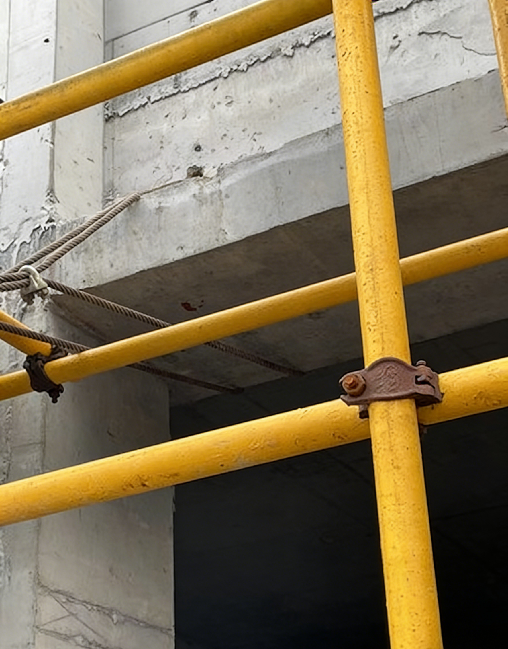 C.悬挑钢丝绳与主体接触未设置防磨损措施