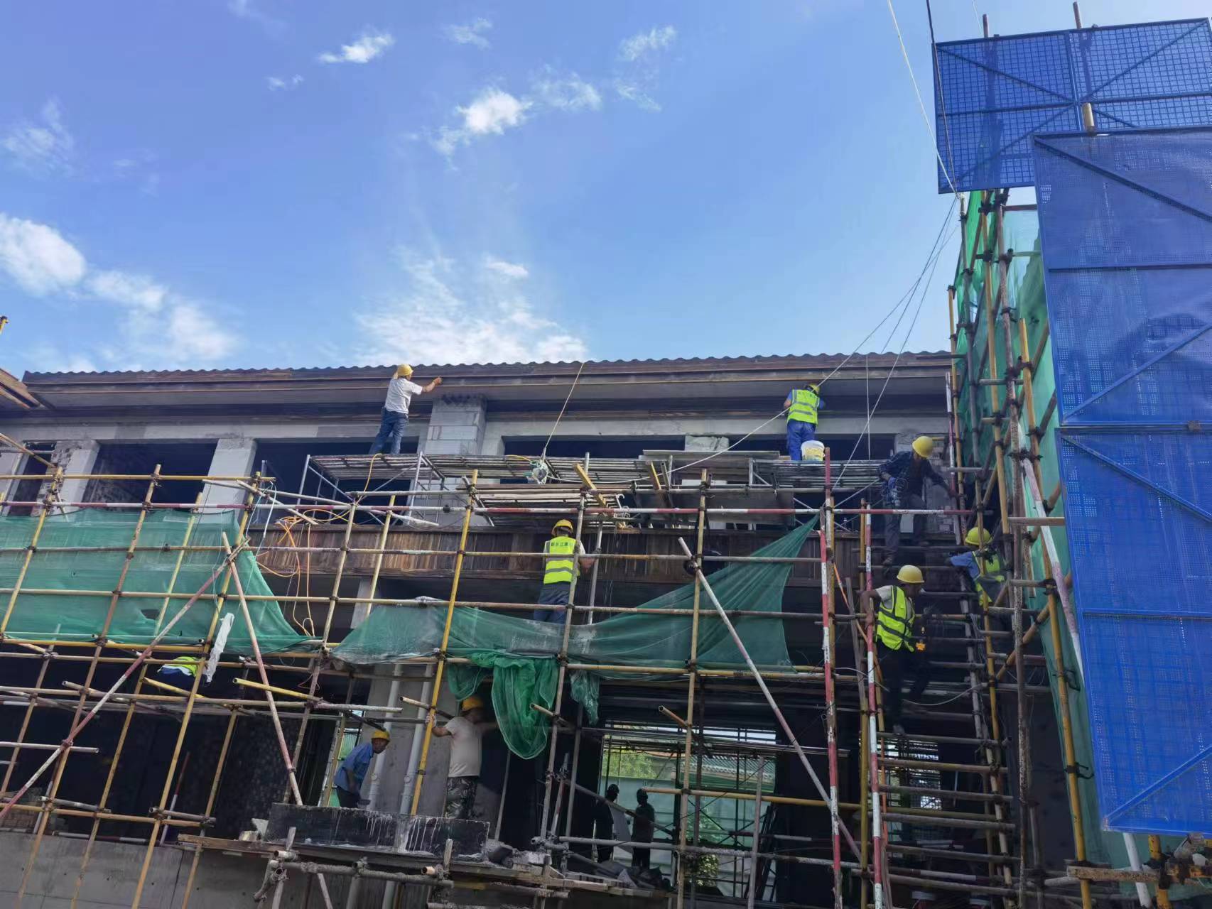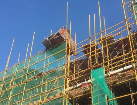 C.脚手架作业层防护不到位,局部密目网缺失