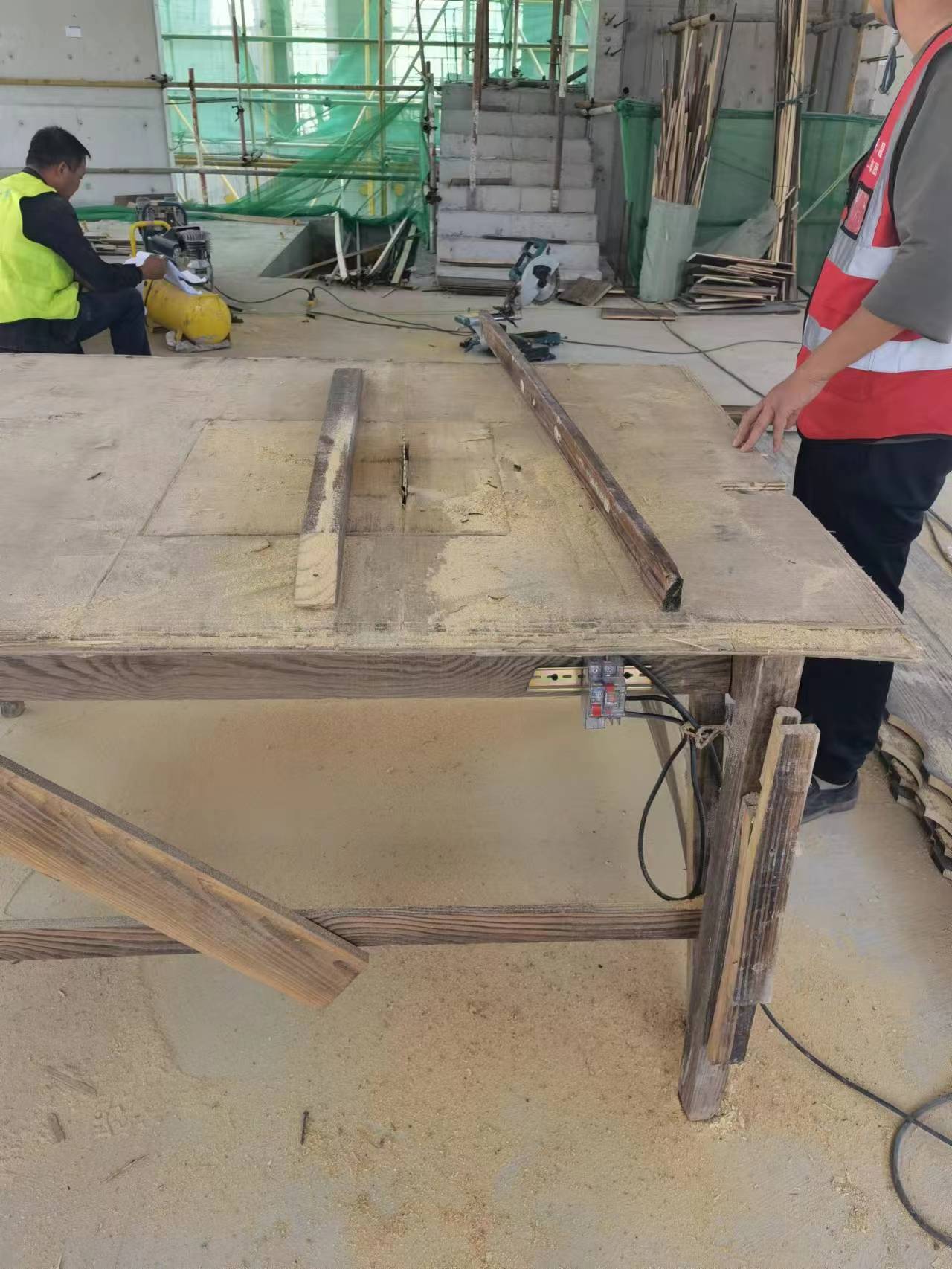 B.木工圆锯缺少锯盘护罩和防护挡板