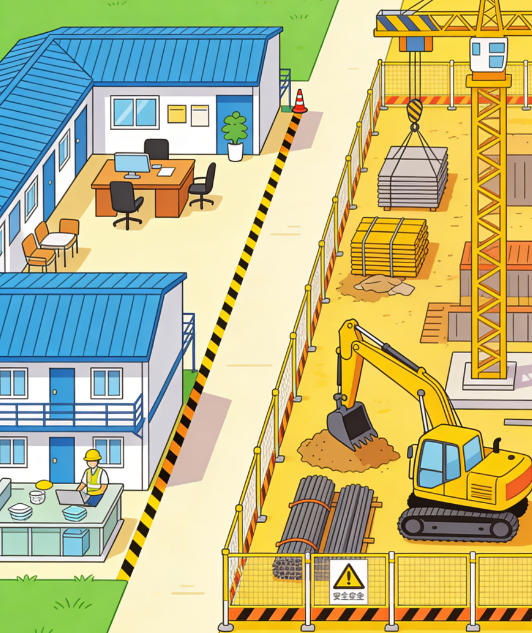 第339题 施工单位应当将施工现场的办公、生活区与作业区合并设置,以便于管理( )。