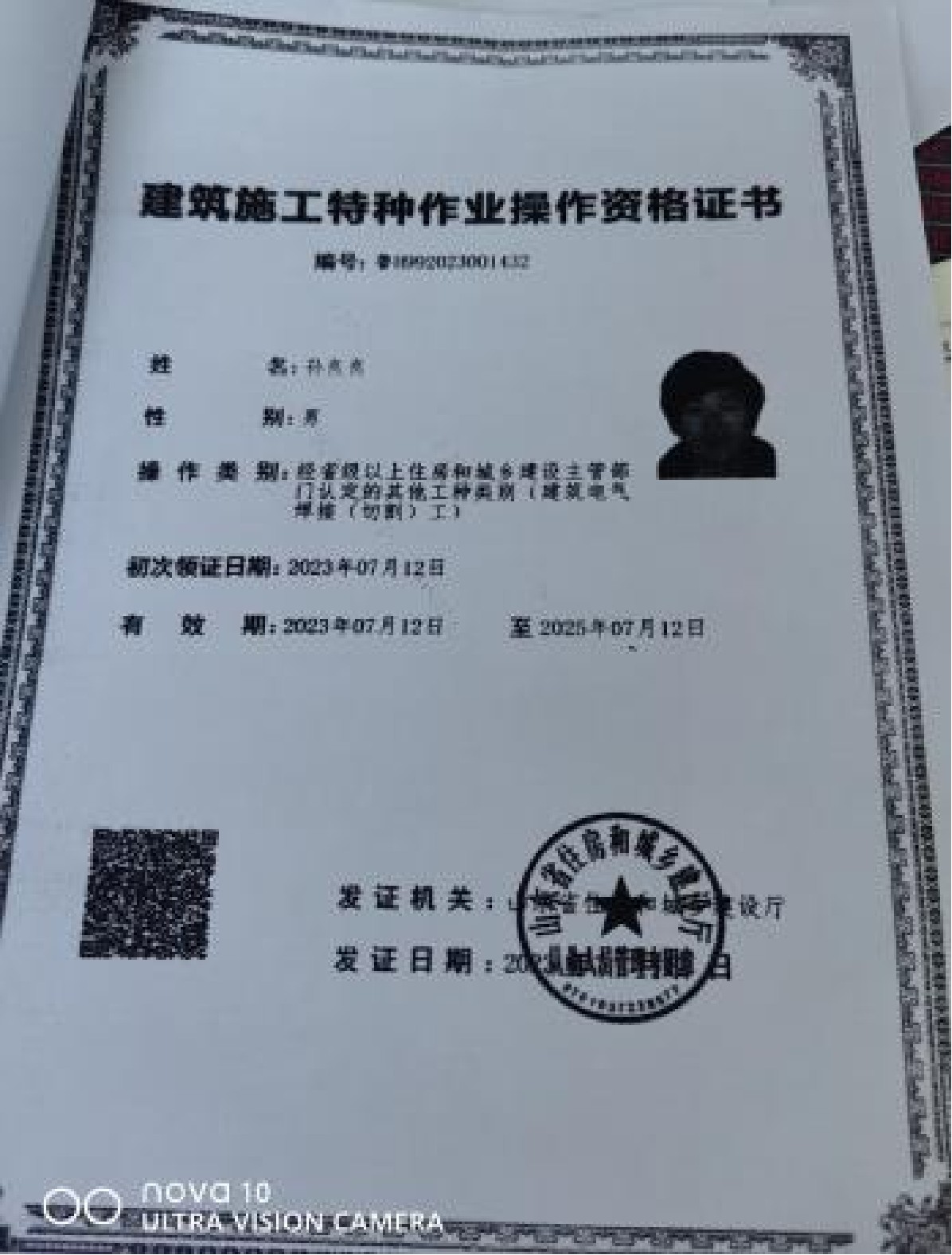 第380题 图示焊工证显示已过期,属于重大事故隐患( )。