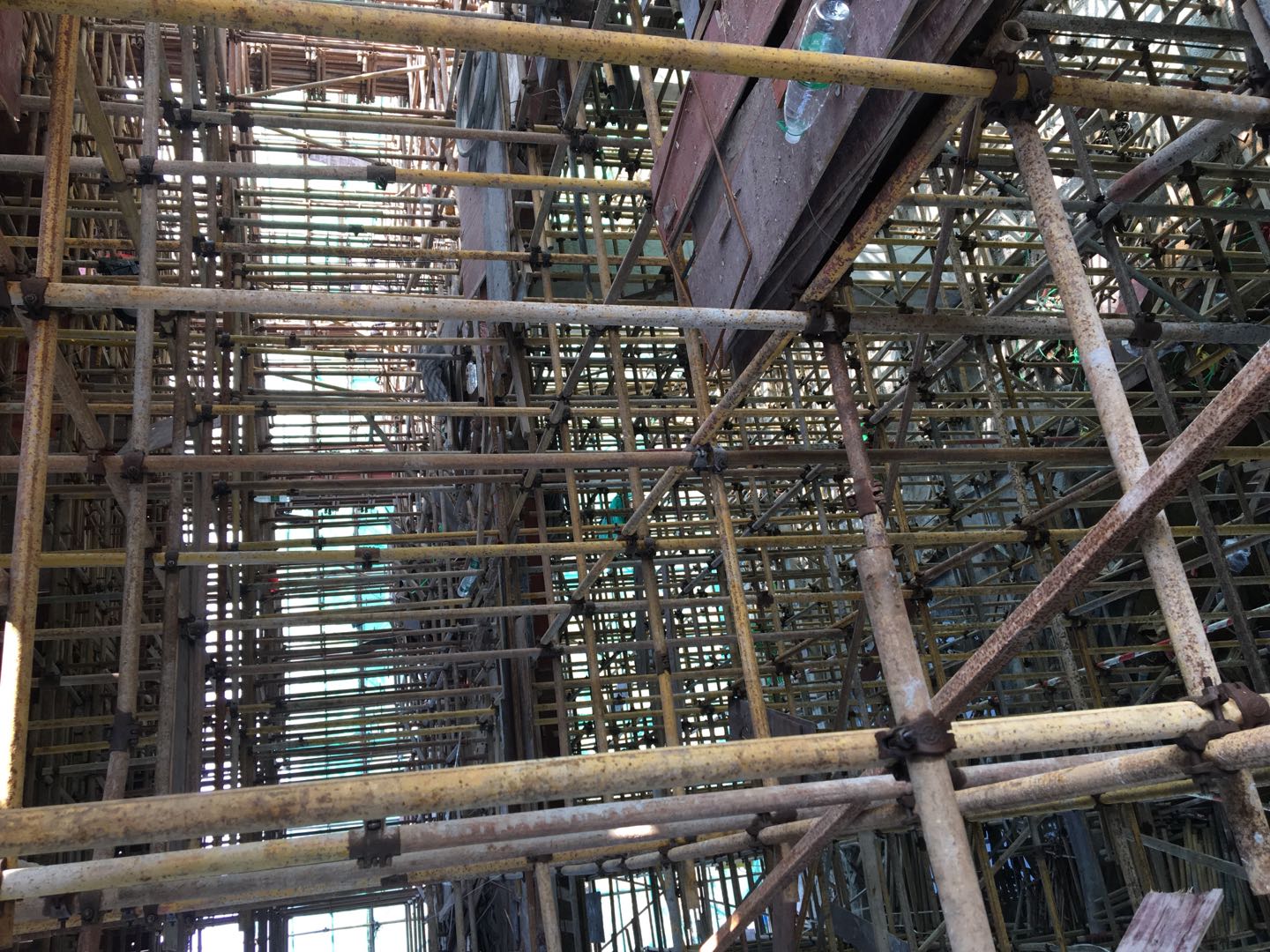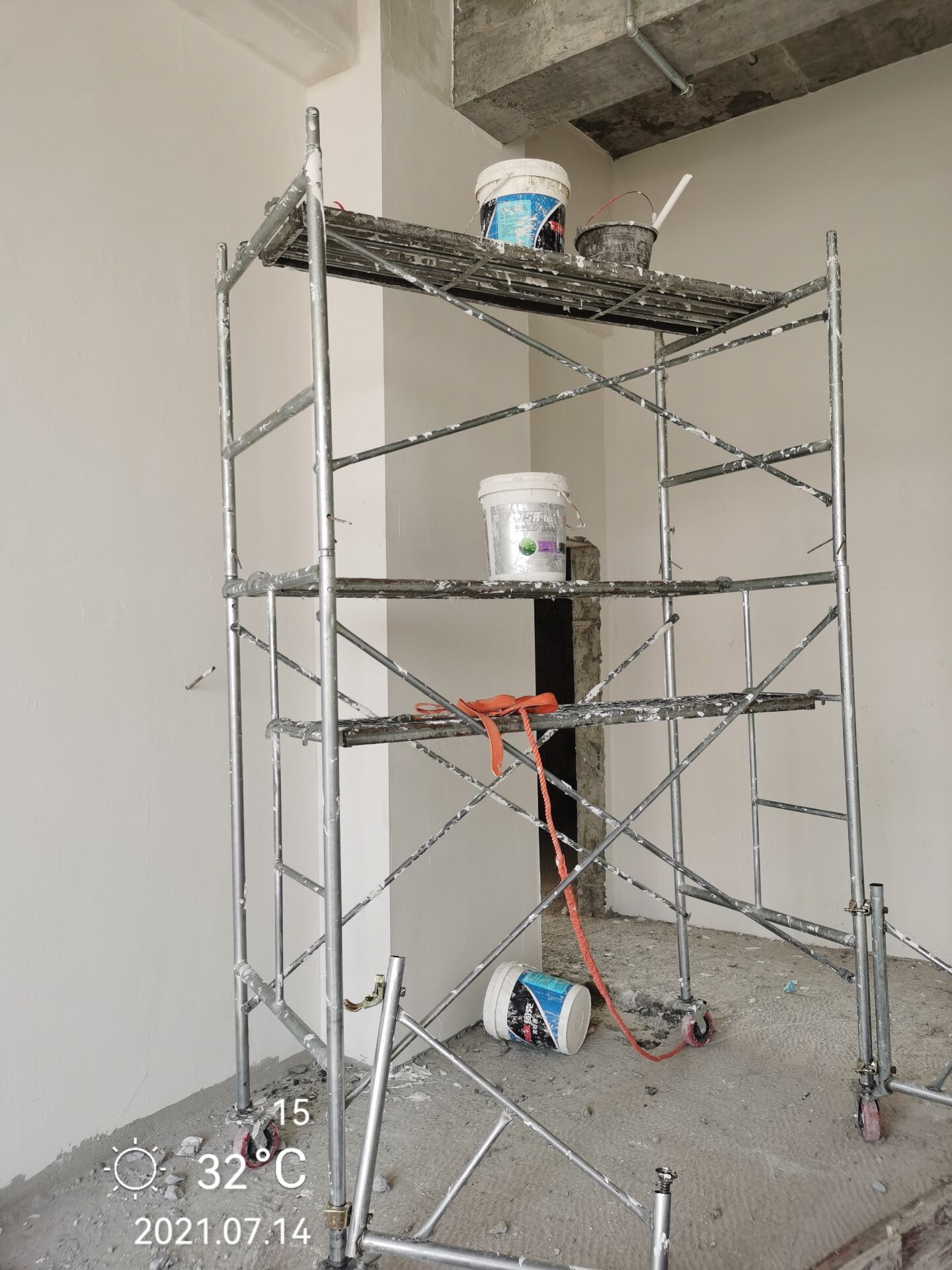 A.脚手架上堆放木方