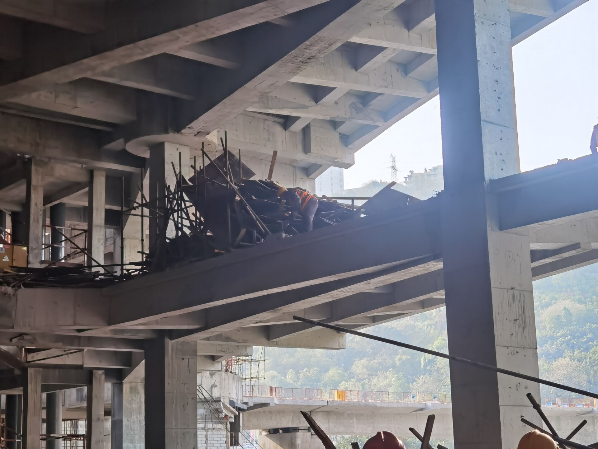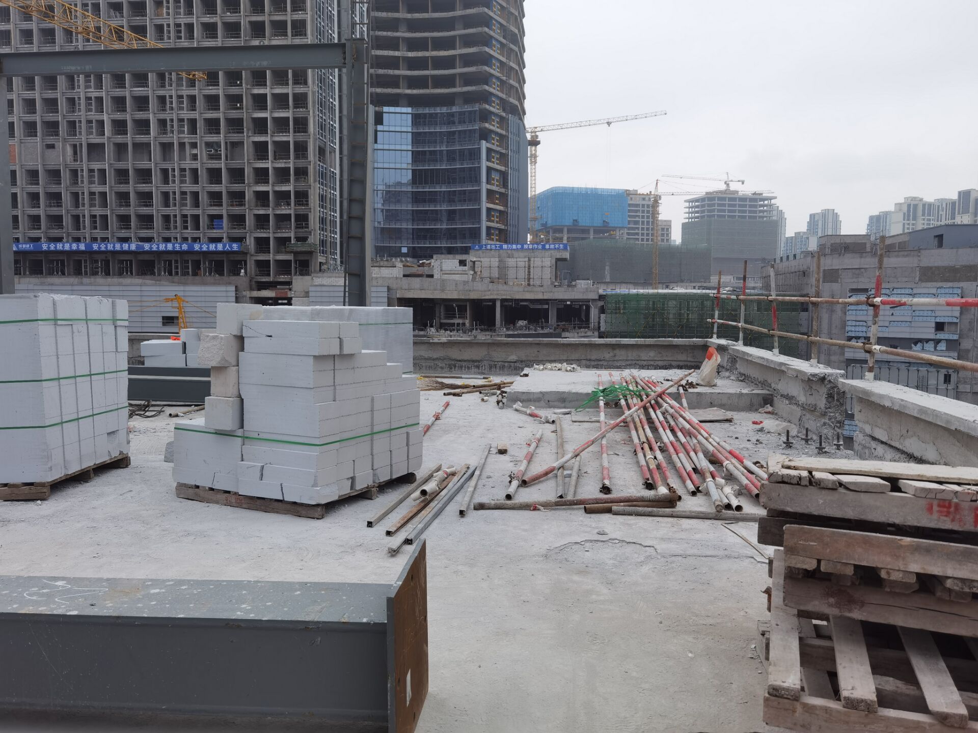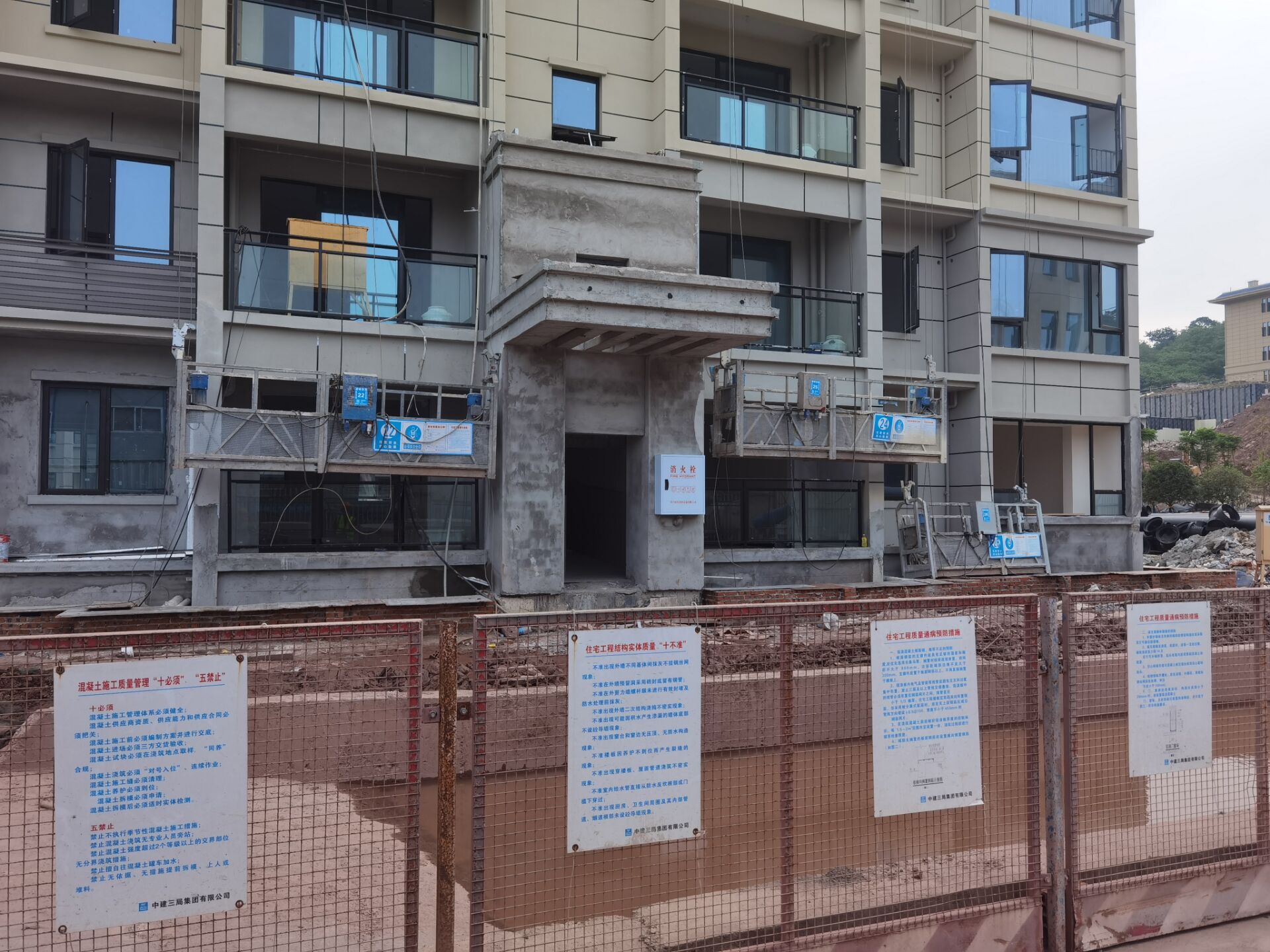 第3316题 该图为某建筑工地现场施工情况图片,请问该图中存在( )管理缺陷