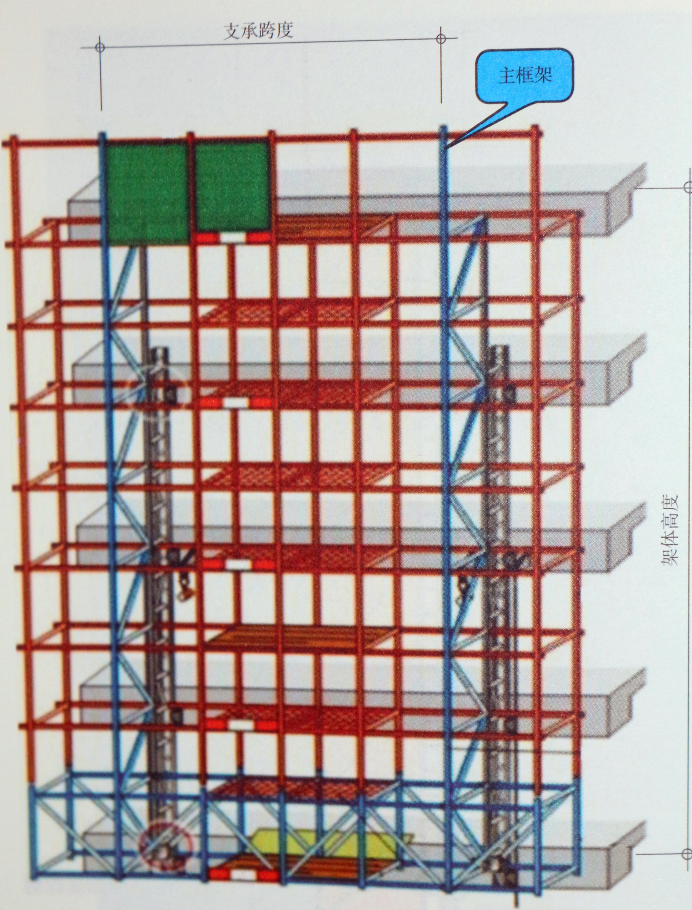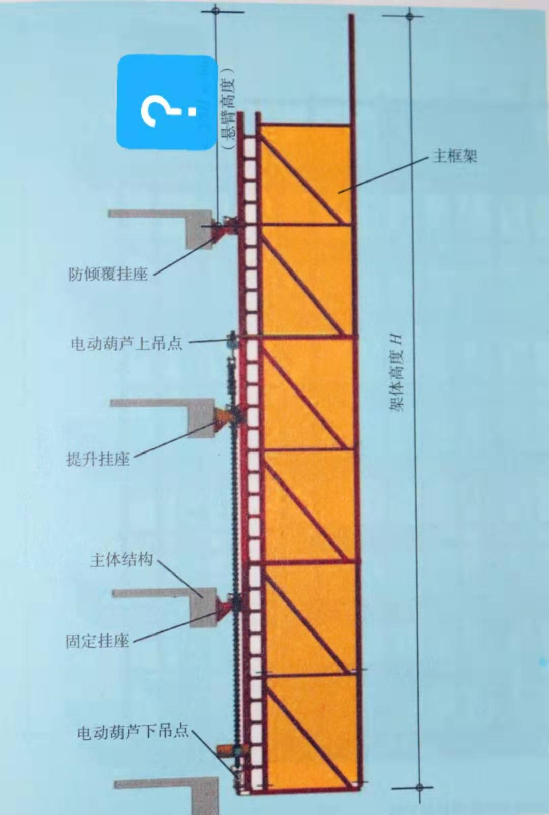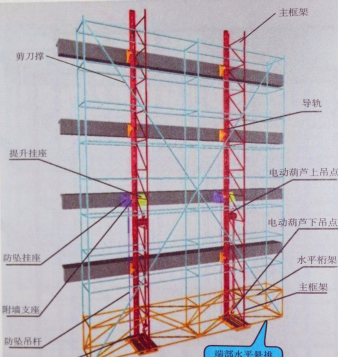 第3574题 图中关于附着式升降脚手架说法正确的是。 ( )