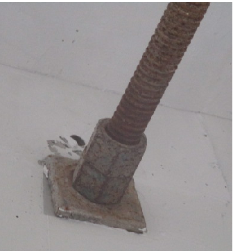 第3562题 据图所示,附墙支座受拉螺栓的螺母不得少于两个或应采用弹簧垫圈加单螺母,垫板尺寸应由设计确定,且不得小于( )。