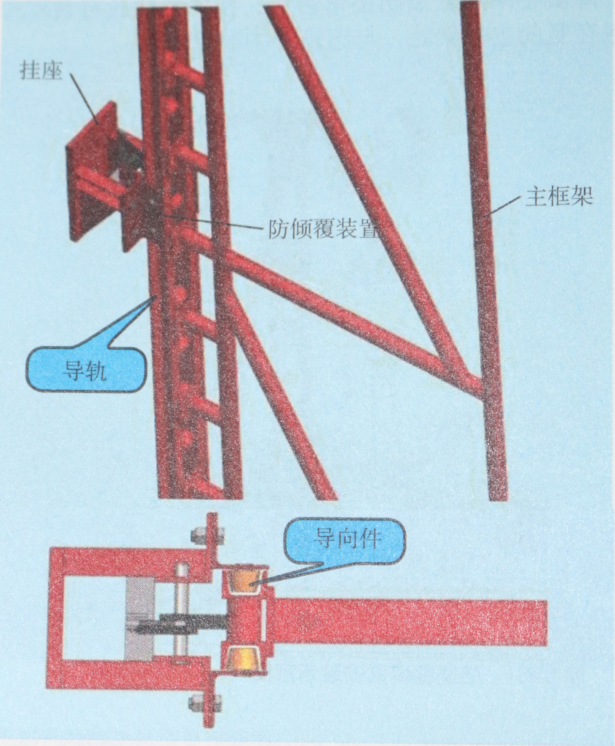 第3579题 图中关于防坠装置的说法,正确的是哪一项? ( )