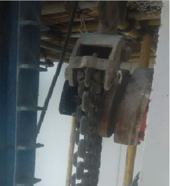 第3581题 图中采用环链葫芦作升降动力时,应严密监视其运行情况, 及时排除( )正常运行的故障。