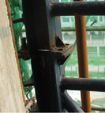 第3591题 关于图示脚手架在施工电梯断开处,主要存在的问题是( )。