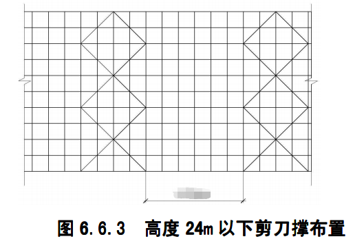 第3600题 如图所示,脚手架高度在24m及以下的双排脚手架间隔()m设置立面剪刀撑。