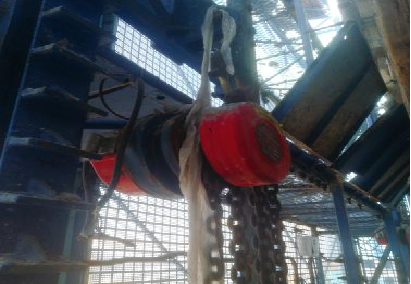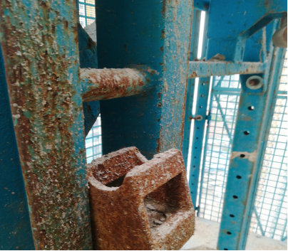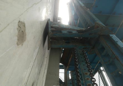 第3608题 据图所示附着式升降脚手架的提升支座,存在的主要问题是( )