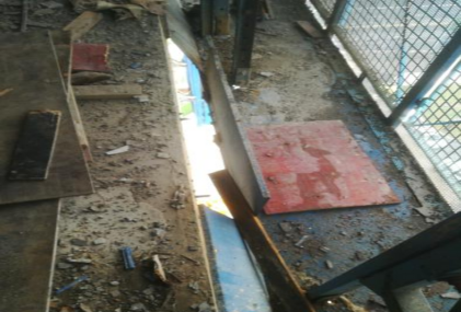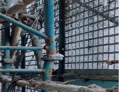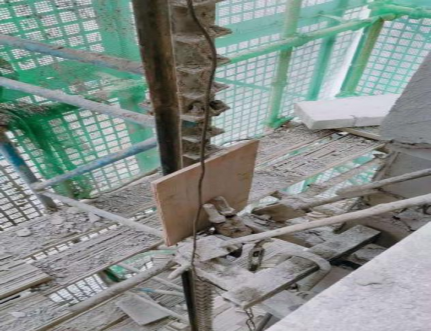 第3619题 据图所示附着式升降脚手架,存在的安全隐患是( )