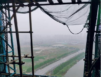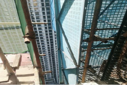 第3620题 据图所示架体与施工电梯,下列说法正确的是( )
