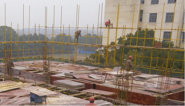 第3810题 某工地正在搭设悬挑外脚手架,监理安全工程师却提出现场有安全隐患,要求立即暂停外脚手架搭设,请问下图中有什么安全隐患?