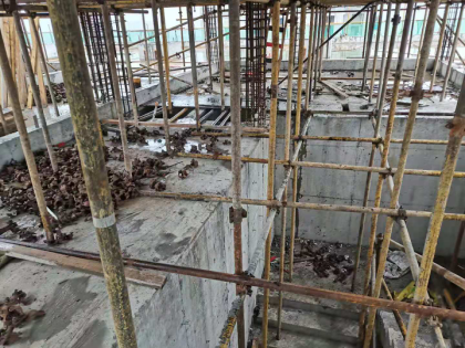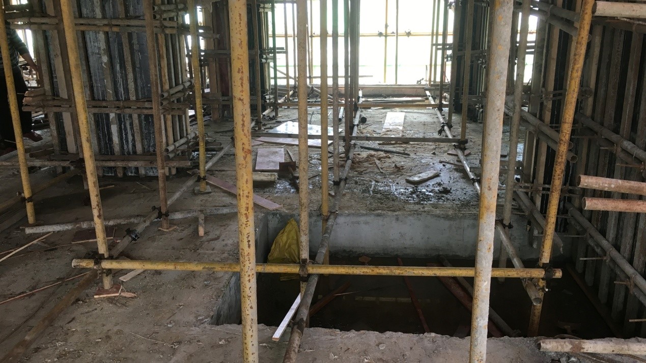 B.模板支撑系统下部有积水