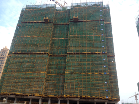 B.外脚手架悬挑段首次悬挑工字钢预埋环布置后