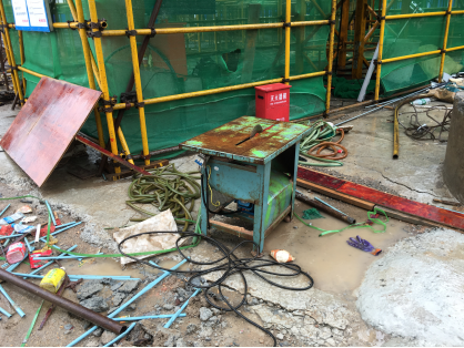 E.工人未戴安全帽,戴遮阳帽