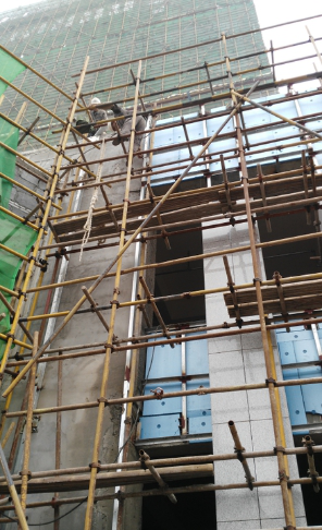 A.悬挑脚手架首层防护未到位