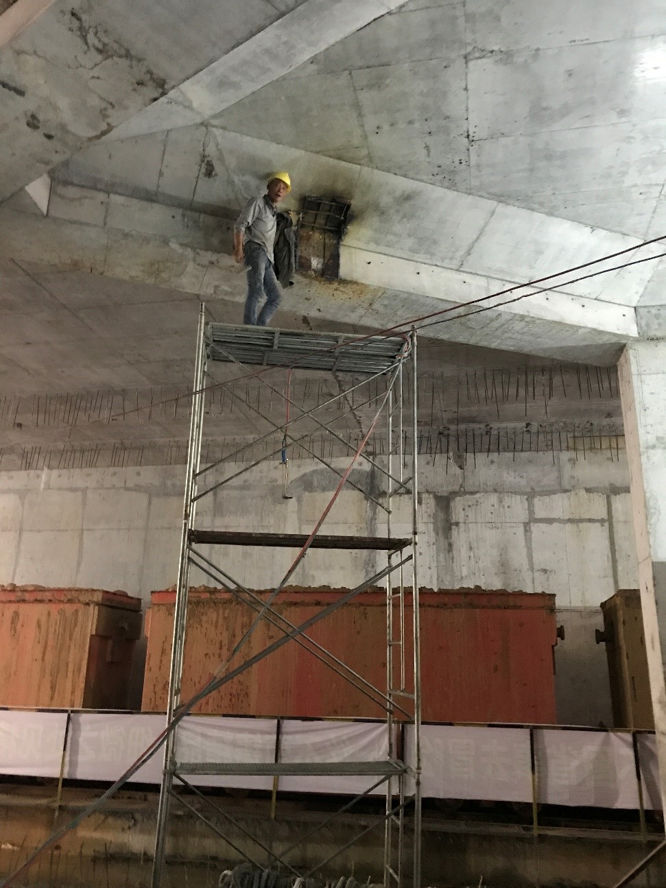 A.电机车行走区域周边不可搭设支架进行临时立柱桩割除施工