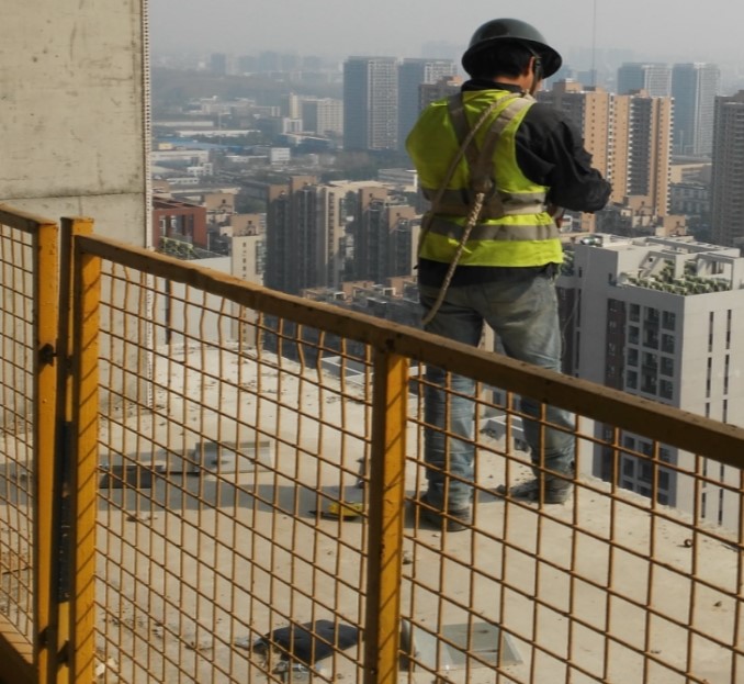 A.外幕墙作业临边防护缺失,存在高处坠落风险