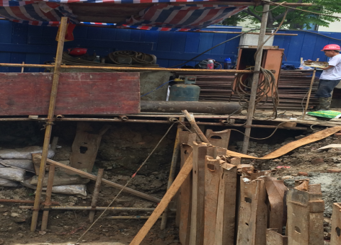 第7786题 下图是某地铁车站主体结构基坑开挖期间施工图片,请识别图中存在的安全隐患( )。