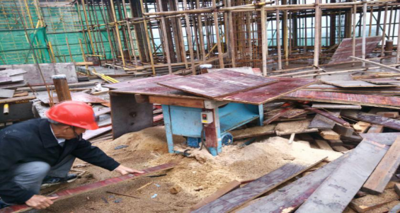D.施工现场有人员未佩戴安全帽