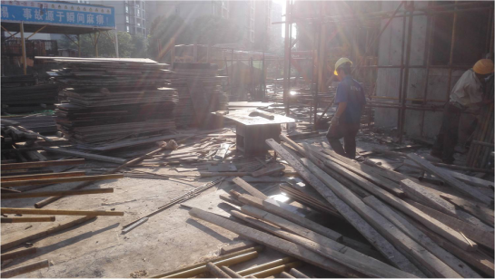 E.民工使用雨布、模板搭设临时厨房