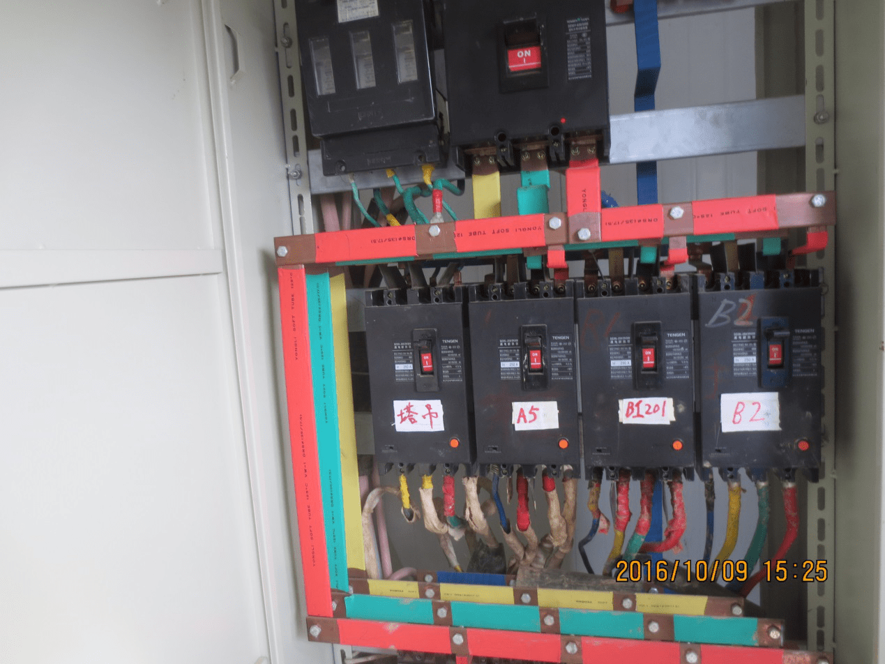 B.配电柜未按照规范要求设置保护接地措施