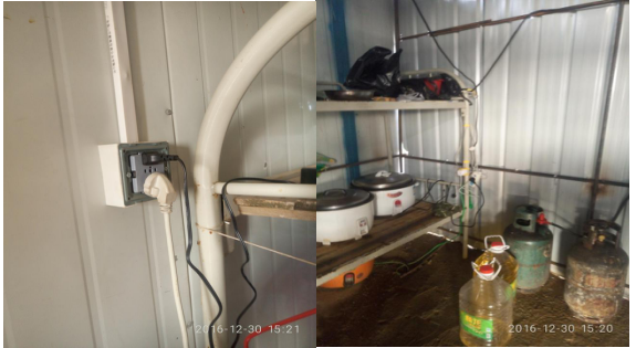 C.生活区电线未进行穿管保护直接放在地上,使用较杂乱,需要及时整理统一走线