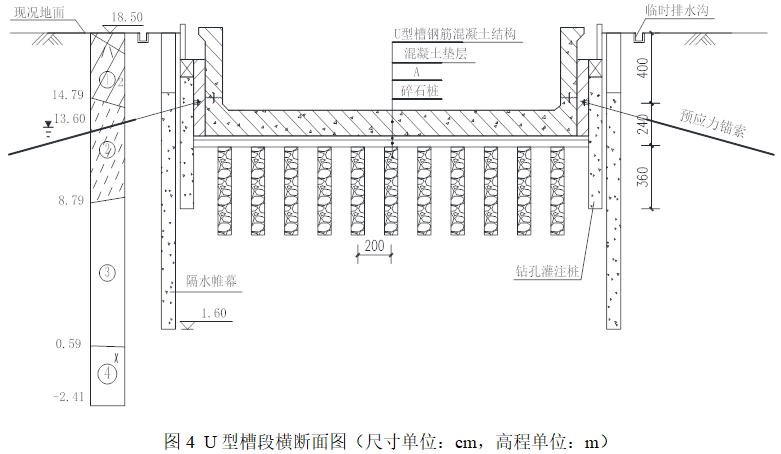 (2)槽底设置边沟排水,集水井抽水;