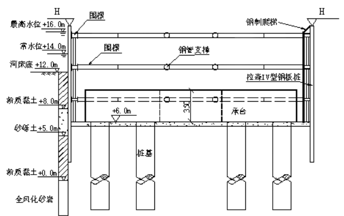 ③钢板桩内侧用沙袋、粘土袋码放堵漏;